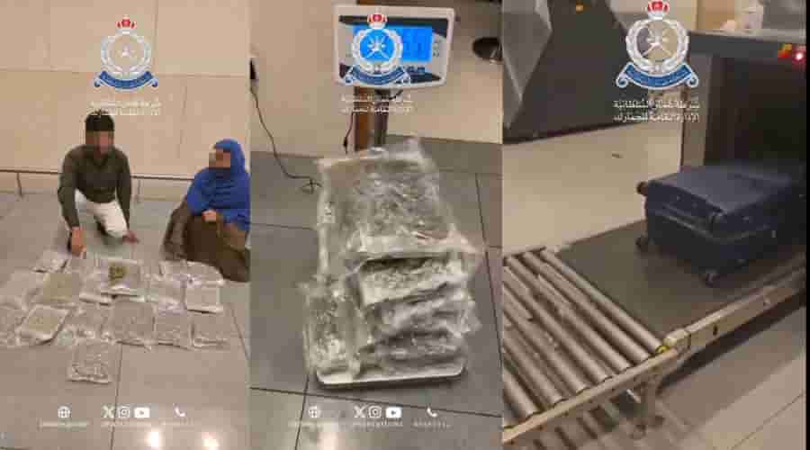 Oman Customs said: The General Directorate of Customs, in collaboration with the General Directorate of Narcotics and Psychotropic Substances Control, thwarted an attempt to smuggle 11.65 kilograms of marijuana through Salalah International Airport. The quantity was seized in the possession of two Indian nationals, who had professionally concealed it within their personal luggage.